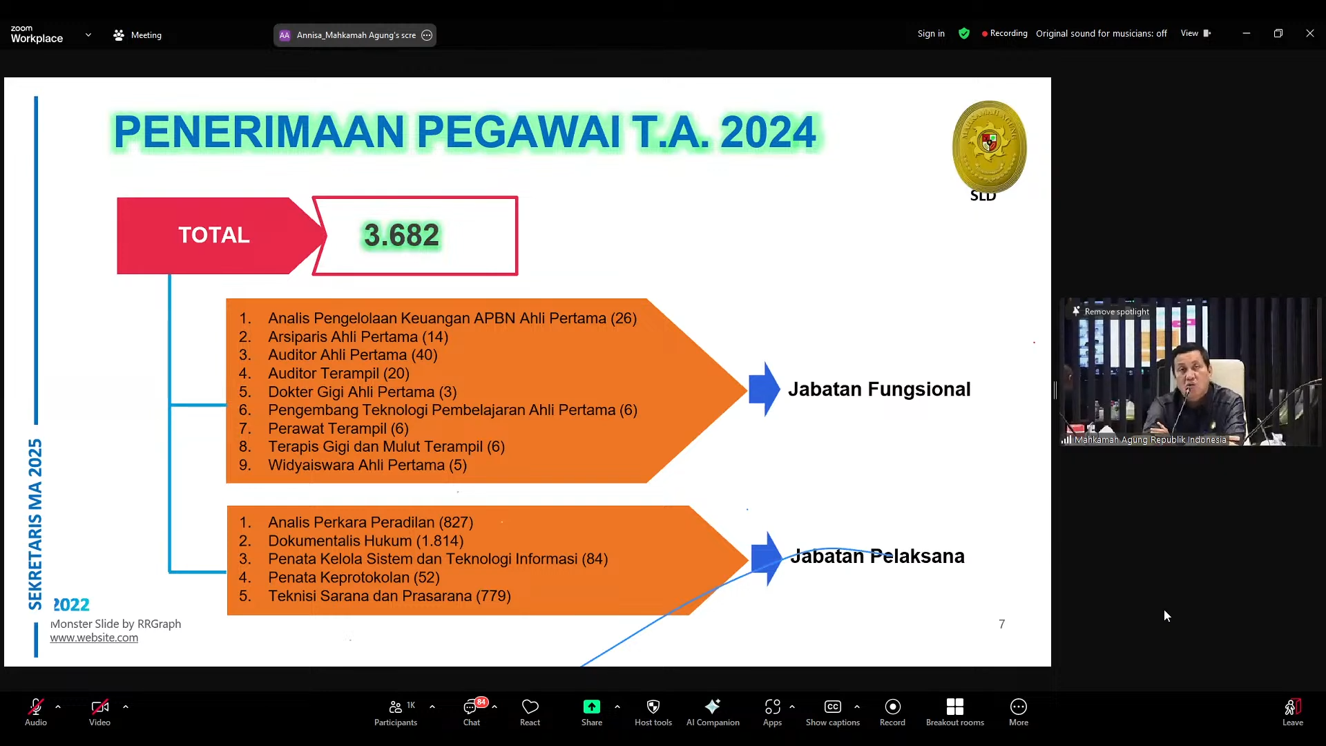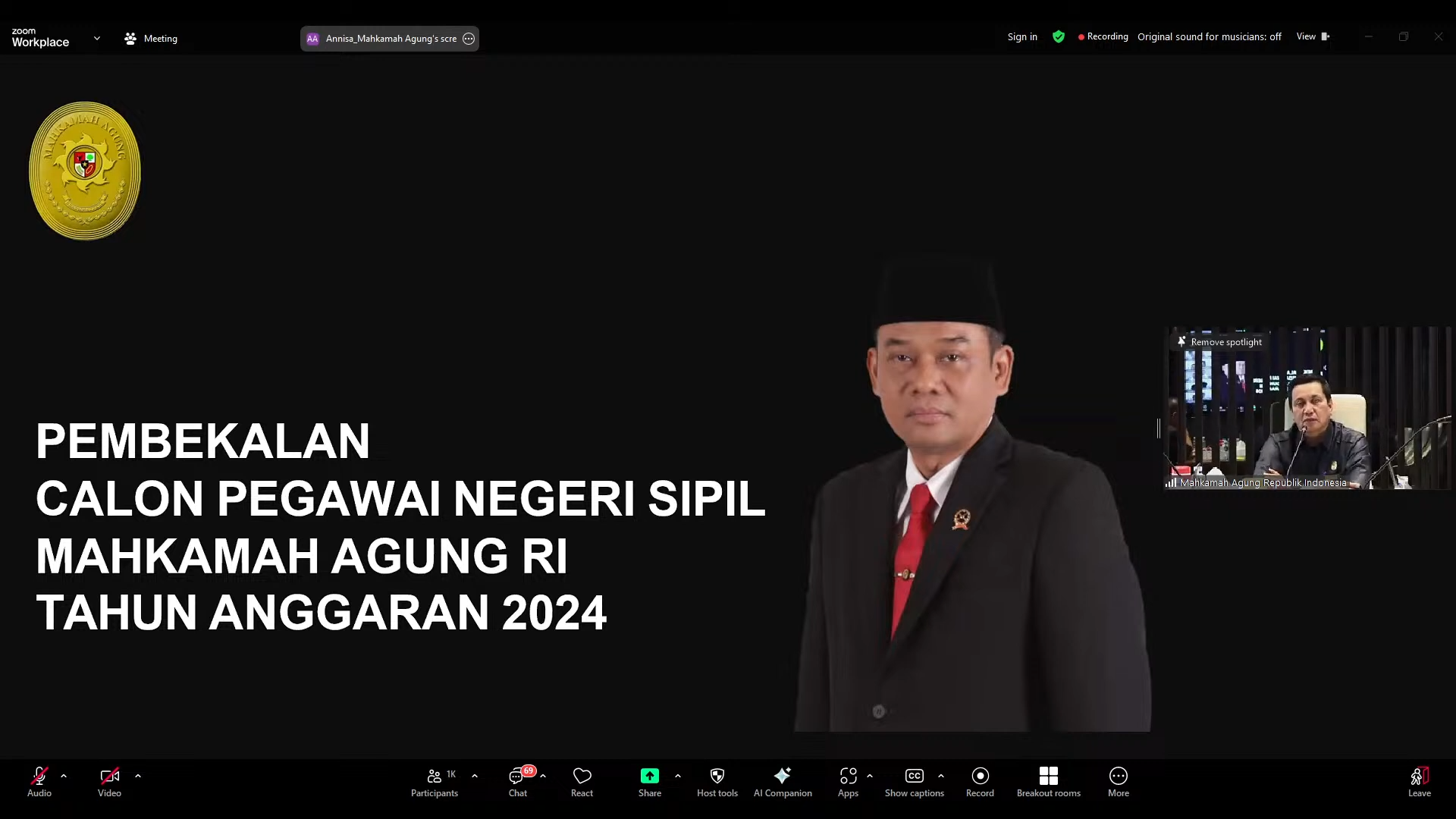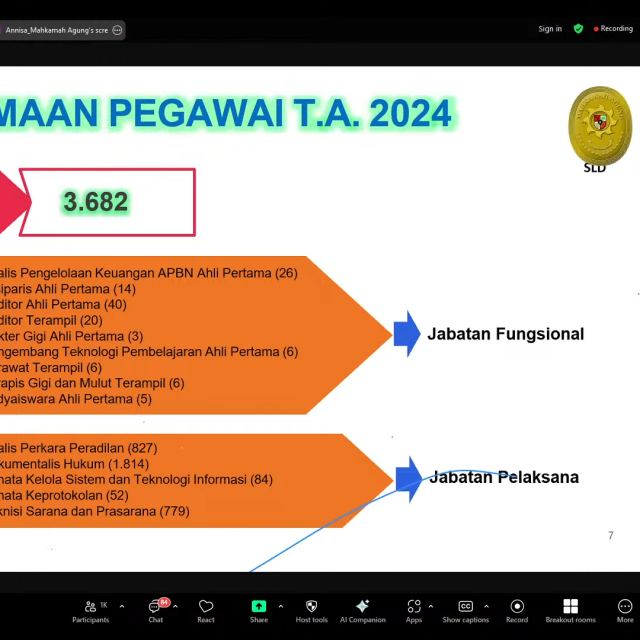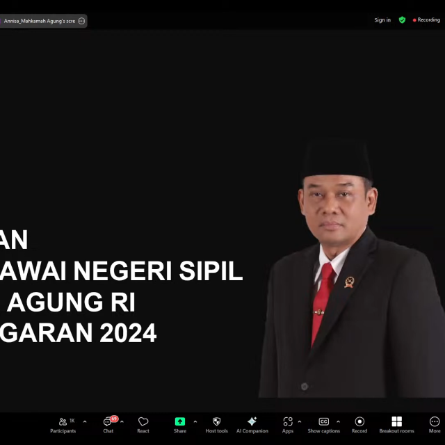 Pada tanggal 21 Mei 2025, Mahkamah Agung RI mengadakan acara pembekalan bagi Calon Pegawai Negeri Sipil (CPNS) tahun anggaran 2024 secara daring.